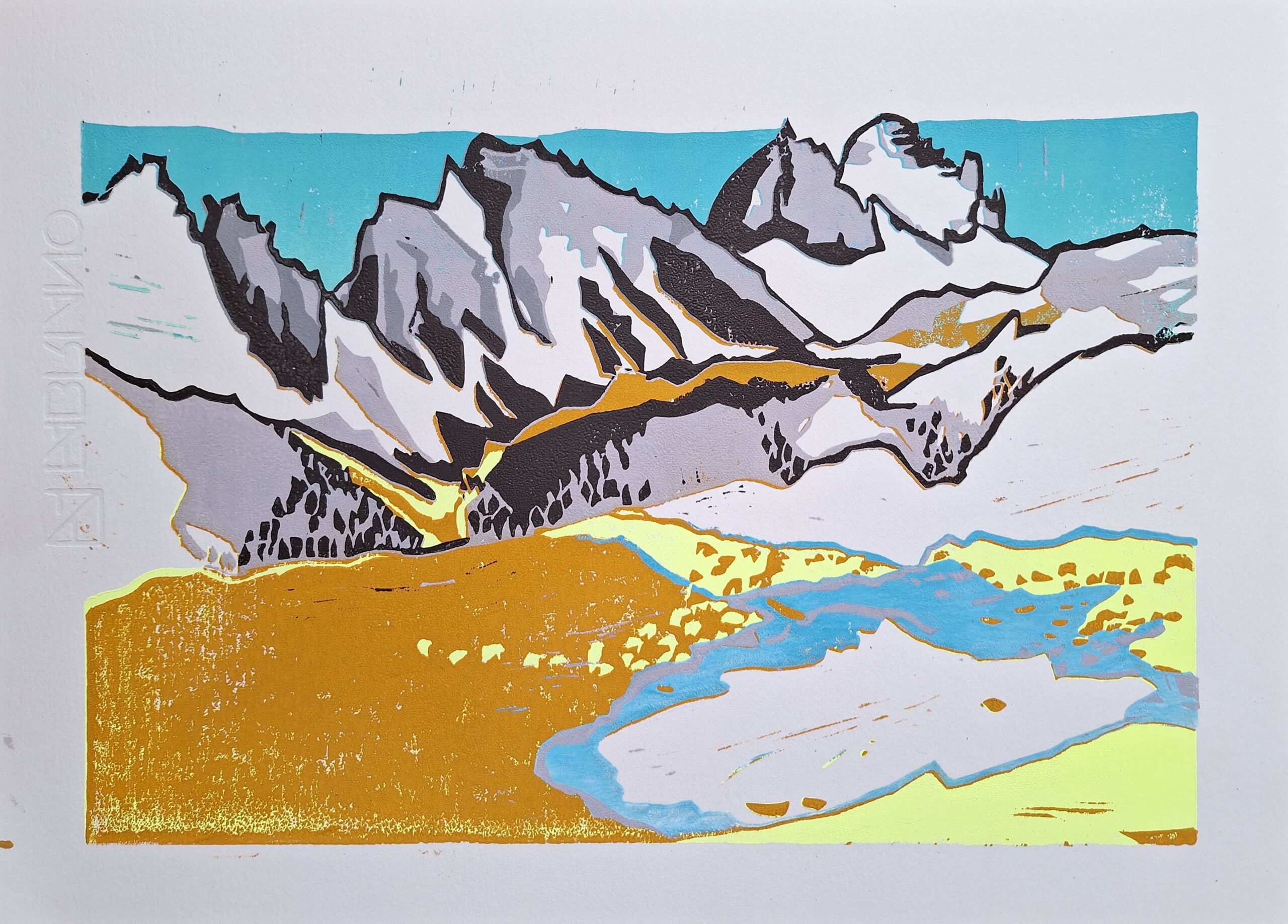 Langkofel, 35 x 25 cm, 2024, Linocut