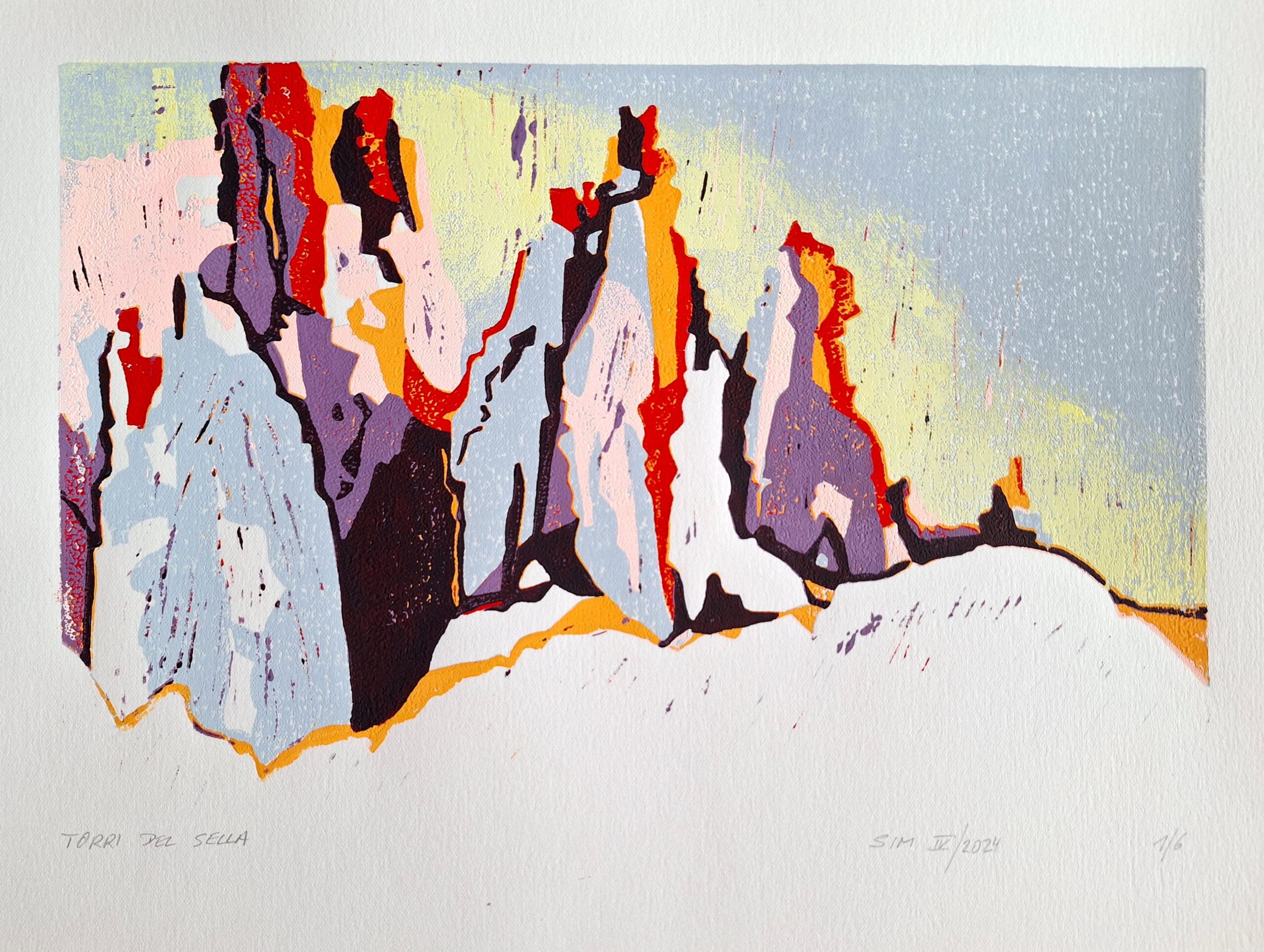 Torri del Sella, 35 x 25 cm, 2024, Linocut