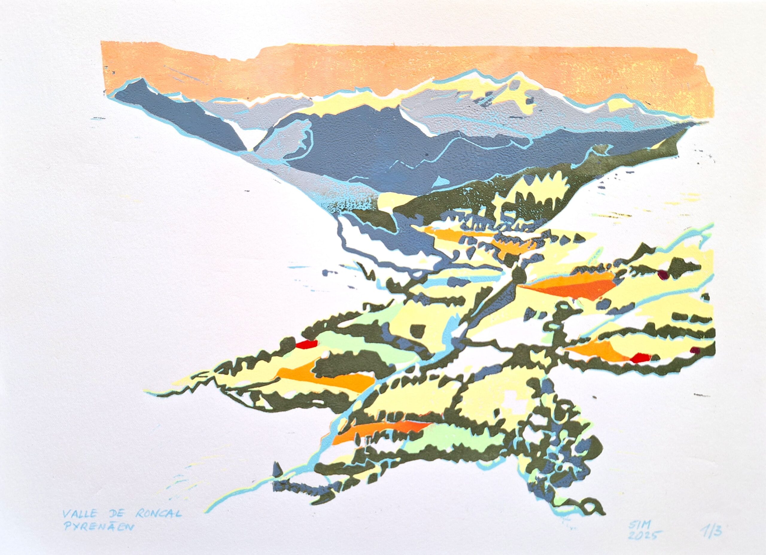 Vallée de Roncal Pyrenäen, 35x25 cm, 2025, Linocut